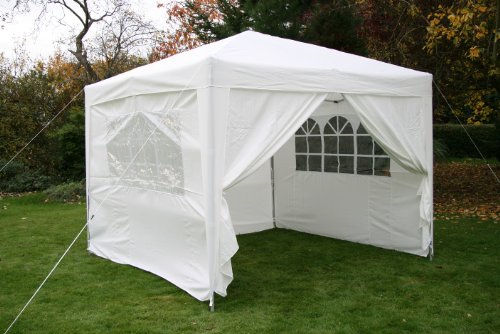 This attractive garden gazebo with side panels is a gorgeous blue shade